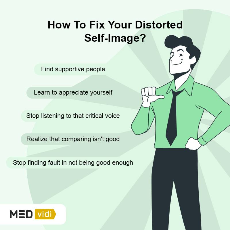 Fortunately, a distorted perception of yourself doesn’t need to affect your self-esteem forever. There are ways to face this head-on and find healthy ways to see yourself the way the world sees you.